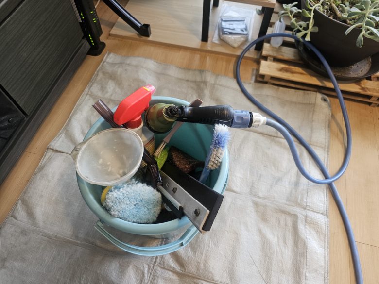 前回やったのは2年前だけどバケツの水は真っ黒になり、かなりカビで汚れてた💦