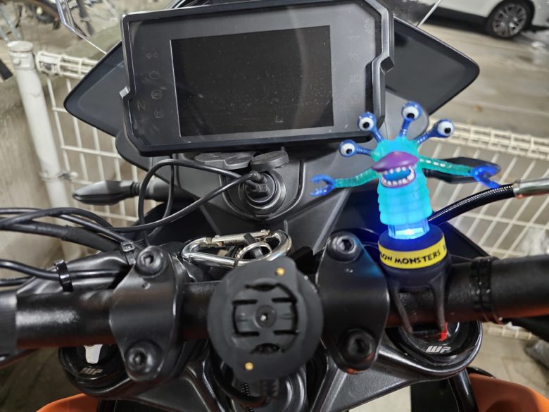 バイクのハンドルにつけるおもちゃアクセといったら、普通はこのヘルメットかぶったアヒルちゃんだよね?!🐣🐣🐣🐣🐥🐥🐥ナップスとかに売ってるし・・・