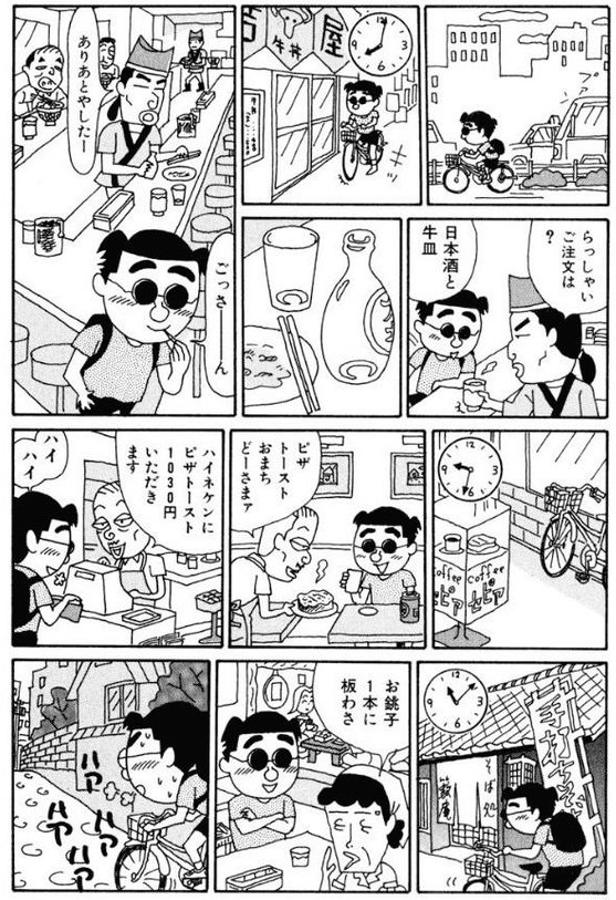 これ1回やってみたかったなぁ〜。こんな飲めないけど。30年前の漫画とはいえ、自転車で酒のハシゴなんて今の時代じゃ完全アウトである。笑