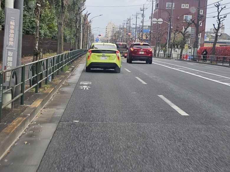 新青梅や青梅街道なんかは1レーンの幅が狭い上に、車がビュンビュン走ってる。自転車で車道を走るのめちゃくちゃ怖そう。