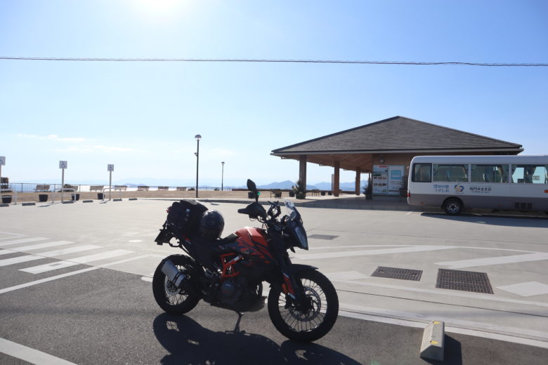 バイクを誘導されたところに止めて。荷物を引っ張り出して道の駅に向かった。