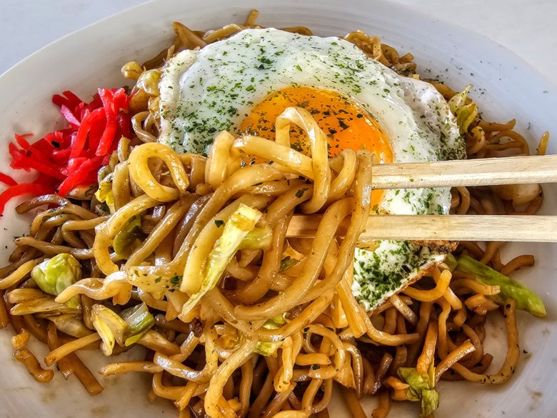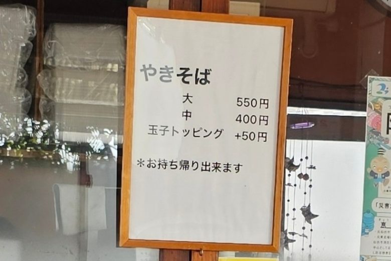 焼きそば中に玉子トッピングを頼んだ。合わせて450円!安い!大にして玉子トッピングにしても600円だよ。