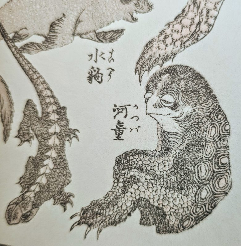 カッパかぁ。。カッパといえば頭に皿だけど、わたしは葛飾北斎の北斎漫画のカッパが好きだなぁ。ちょっと物憂げともいえる、なんとも言えない表情をしてるのがいい。