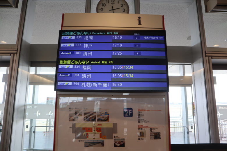 茨城空港に到着しそうな飛行機はなさそうだけど。発着陸の時間がわかる案内板どこかにあるかな。