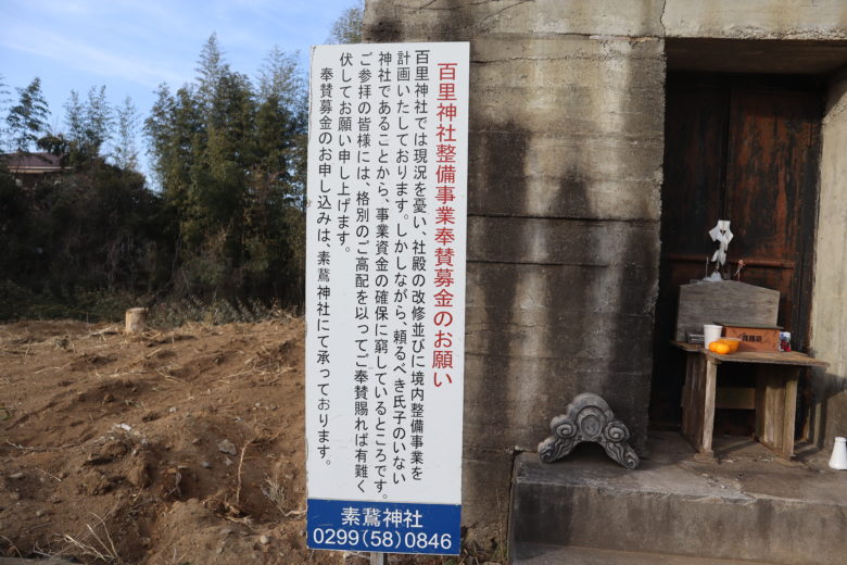 新しそうな鳥居の手前には百里神社と掘られた石があった。