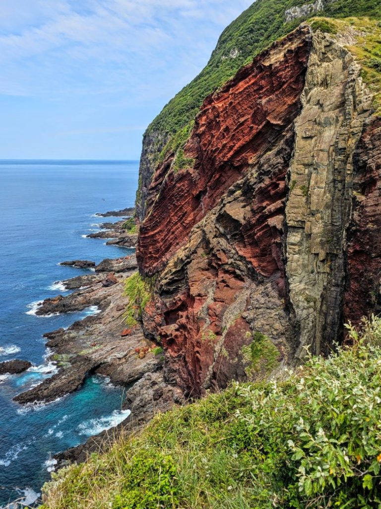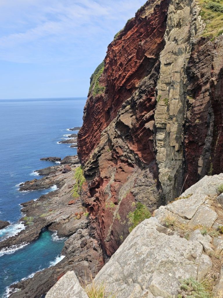 鉄錆色の赤と黒、そして緑が織りなすコントラストが美しい。摩天崖も素晴らしかったけど、この赤壁も圧倒的なスケールで、まさに隠岐を代表する景観って感じ?!