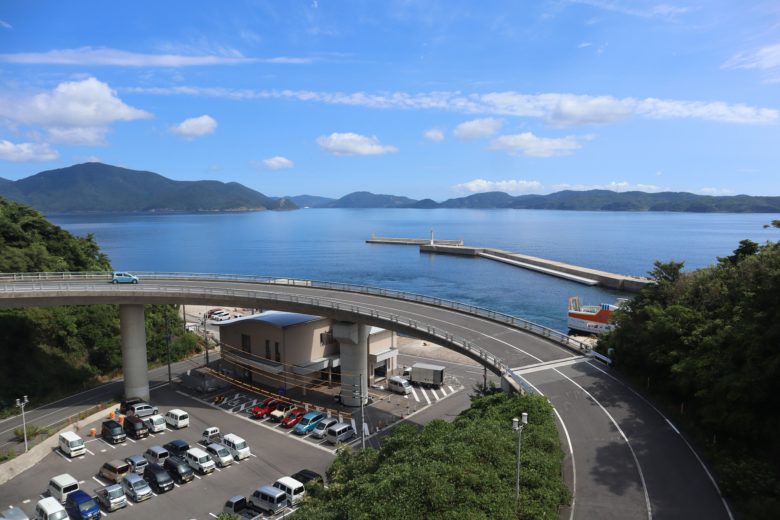 このループ橋が完成する前は、車のすれ違いも難しいような急な坂道を物資輸送用の大型車が行き来してたらしい。この橋の開通によって、知夫村の産業振興や生活に欠かすことのできない道路としてかなり便利になったみたいよ。