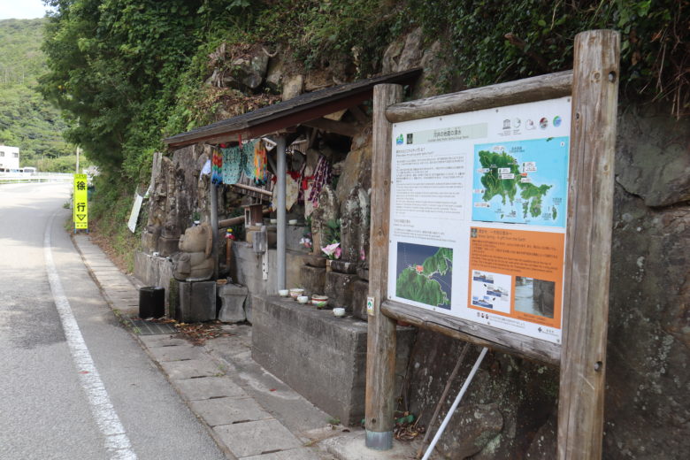 道沿いにお地蔵様に囲まれた湧水スポットがあった。