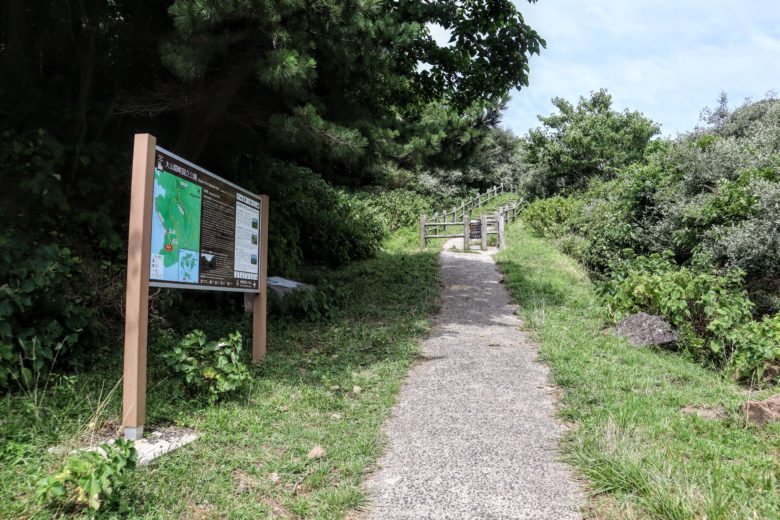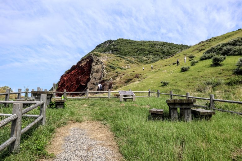 展望台は赤壁にあった看板によると、”知夫里島の最高峰からは、西ノ島の焼火山を中心にして島前カルデラの地形と穏やかな内海の風景、そして島根半島や大山を望む360度のパノラマを体験することができます。”と書いてあった。