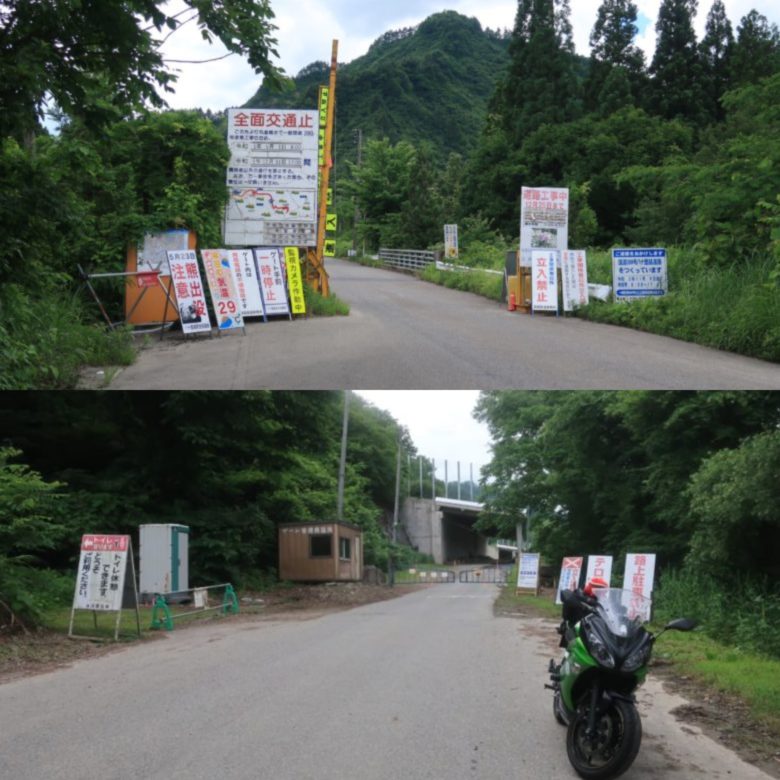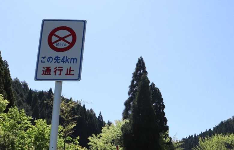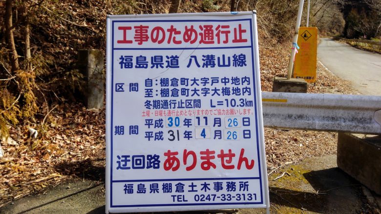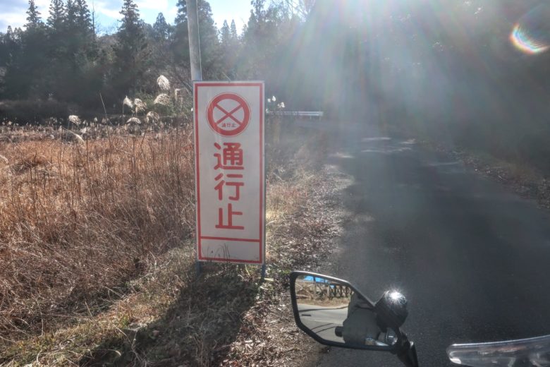 もはやツーリングの風物詩的な存在になっている通行止め看板。